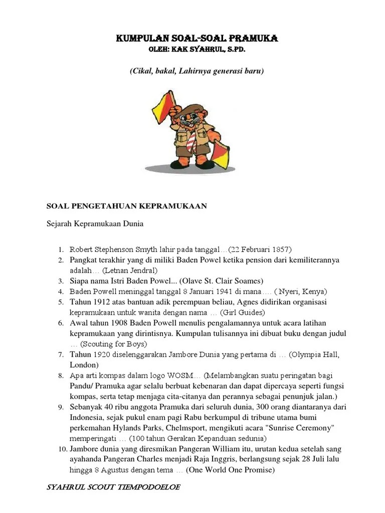 Pendahuluan kalau kita mempelajari sejarah pendidikan kepramukaan kita tidak dapat lepas dari riwayat hidup pendiri gerakan kepramukaan sedunia lord robert . Gerakan kepramukaan secara resmi baru lahir pada tahun 1961, namun gerakan. Disini kami ulas sejarah lengkap pramuka indonesia dan dunia . Pramuka adalah organisasi atau gerakan kepanduan yang menjadi wadah proses pendidikan kepramukaan yang dilaksanakan di indonesia. Pada 1923, belnda mendirikan nationale padvinderij .